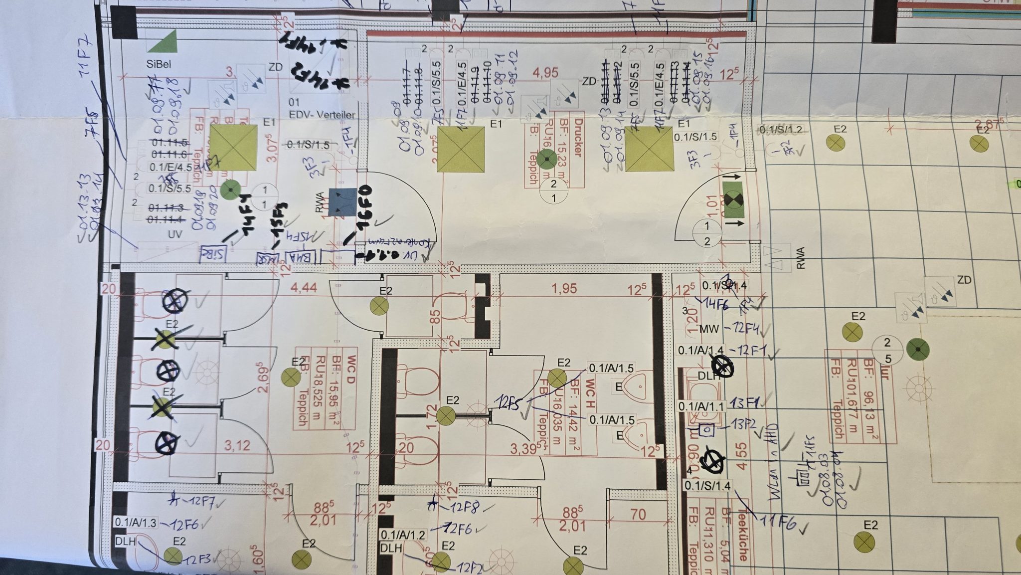 Ursprünglicher Plan mit handschriftlichen Ergänzungen und Änderungen über mehrere Jahre.